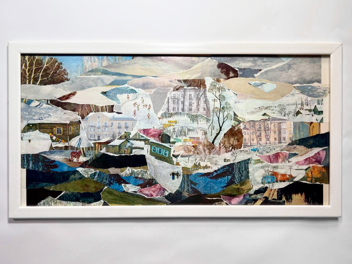 Стремление человека к порядку, смыслу, безопасности и постоянству, ставит его существование в постоянный диалог с безграничной и непостижимой в своей целостности стихией жизни и времени. Коллаж становится размышлением о своем «доме» на краю вечности. Дом, созданный человеком, попытка структурировать бесконечный и безличный поток всего вокруг, найти смысл своего существования на необъятной территории бытия.